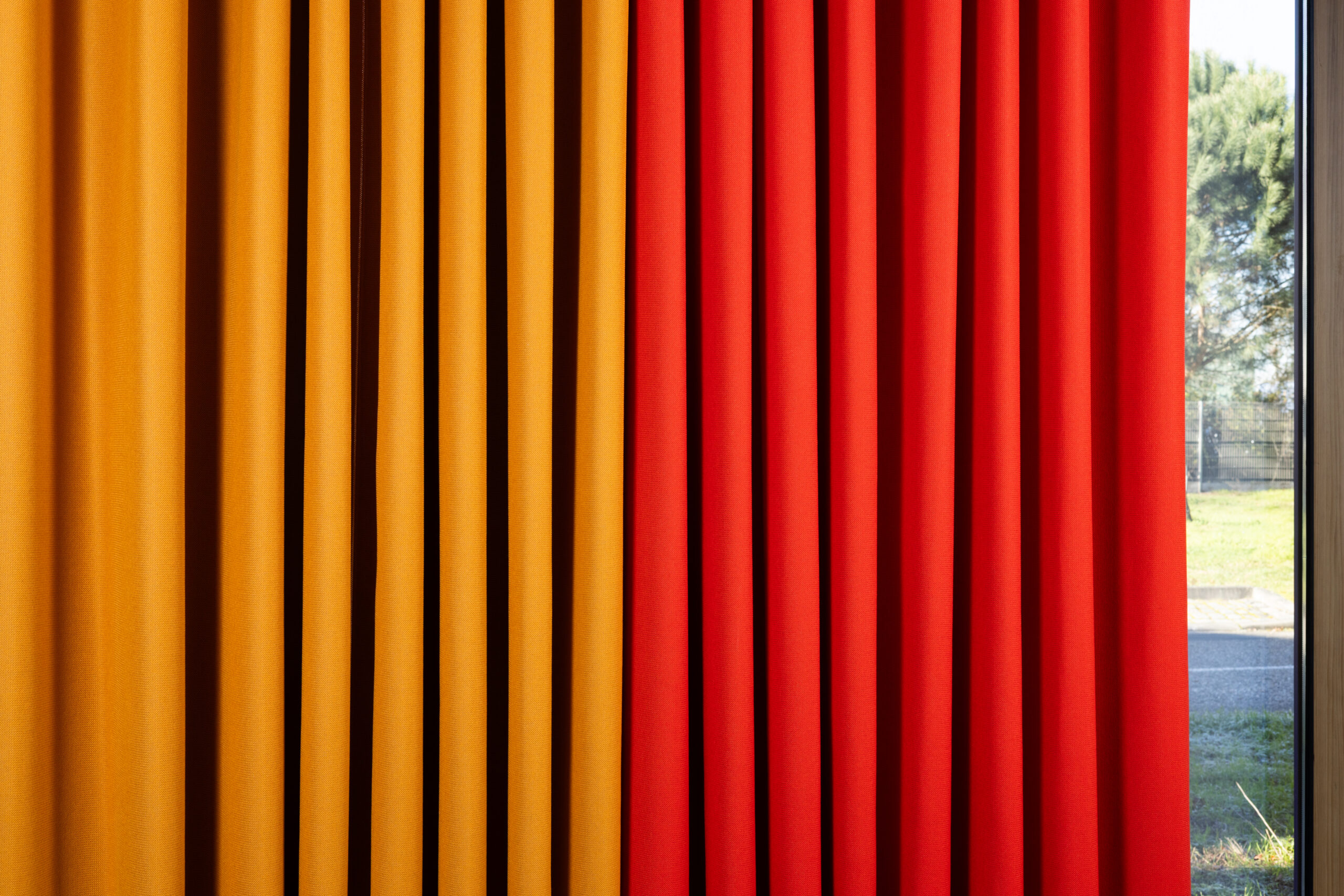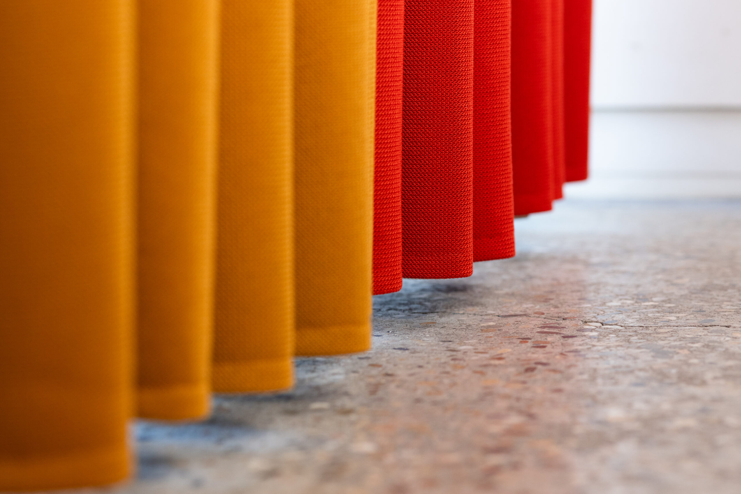 The Velio acoustic curtain comes in a range of 30 colours specially chosen for architectural applications. More or less visible depending on the distance, the texture of its fabric gives it softness and warmth. Its design ensures a smooth drape and even pleats. Highly flame-resistant, it is designed for use in public buildings.