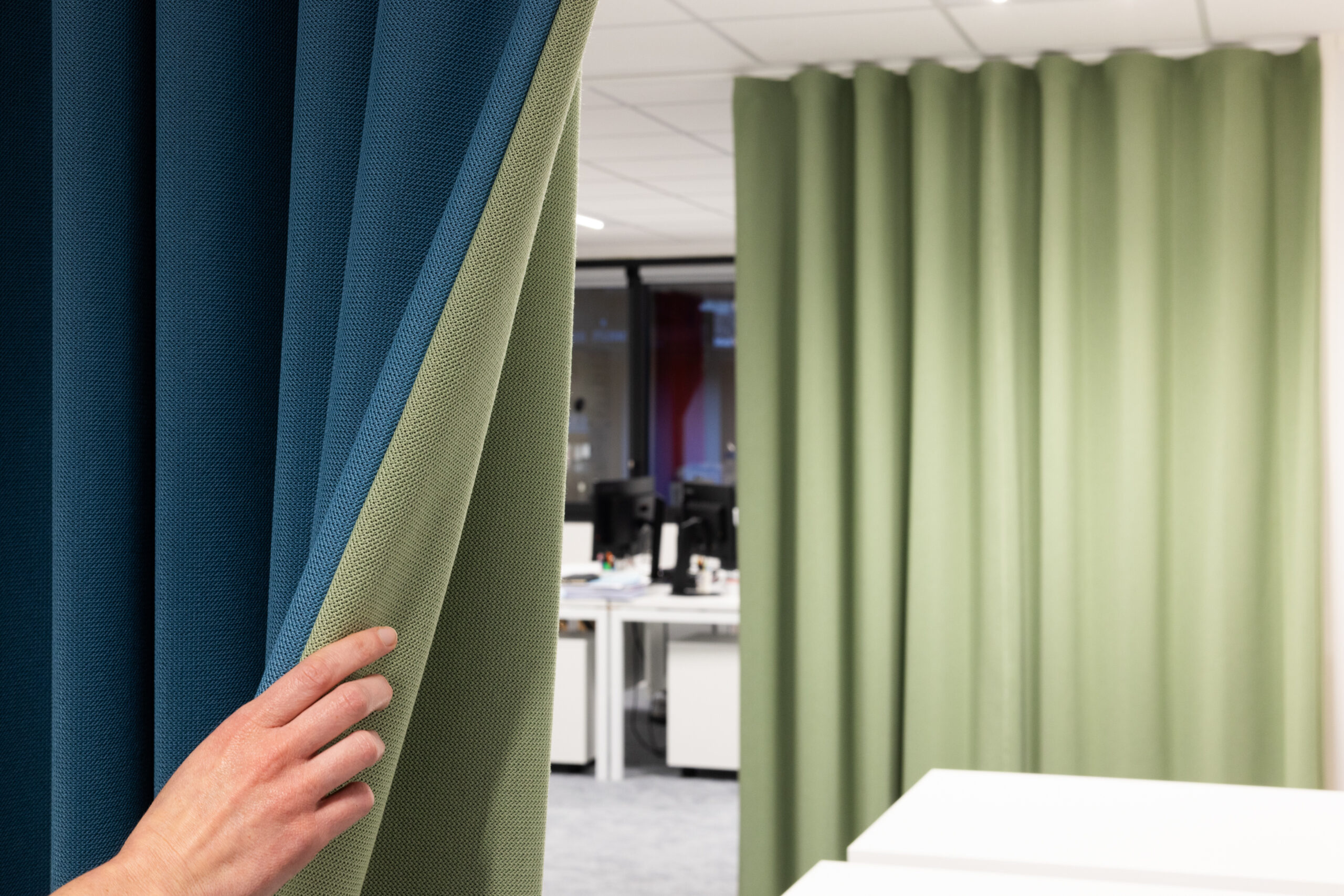 By adjusting views and reducing reverberation and sound transmission, Velio acoustic curtains provide individual comfort in communal spaces.