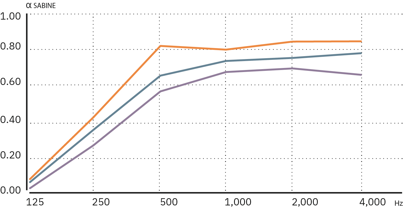 • Sound absorption coefficient ɑw = 0.70 for a Velio acoustic curtain